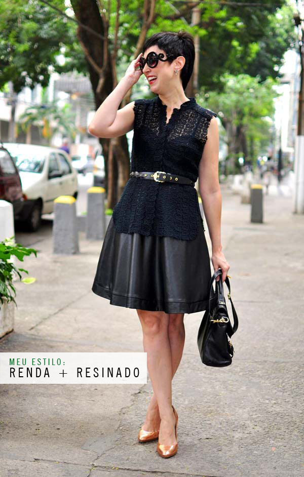“Ana, mas você não usa nada com renda?” Opa, até uso, mas tem que ser algo mais moderninho ou numa mistura com materiais que deem mais peso a ela. Esse look de 2014 mostra uma produção de inspiração lady like, quando fiz uma sobreposição de blusa com um vestido que eu nem amava tanto, mas numa proposta mais atualizada com a mistura de texturas, deixando o visual preto total mais interessante. Aliás, gosto mais até por parecer ser uma peça única, quando na verdade tem sobreposição.