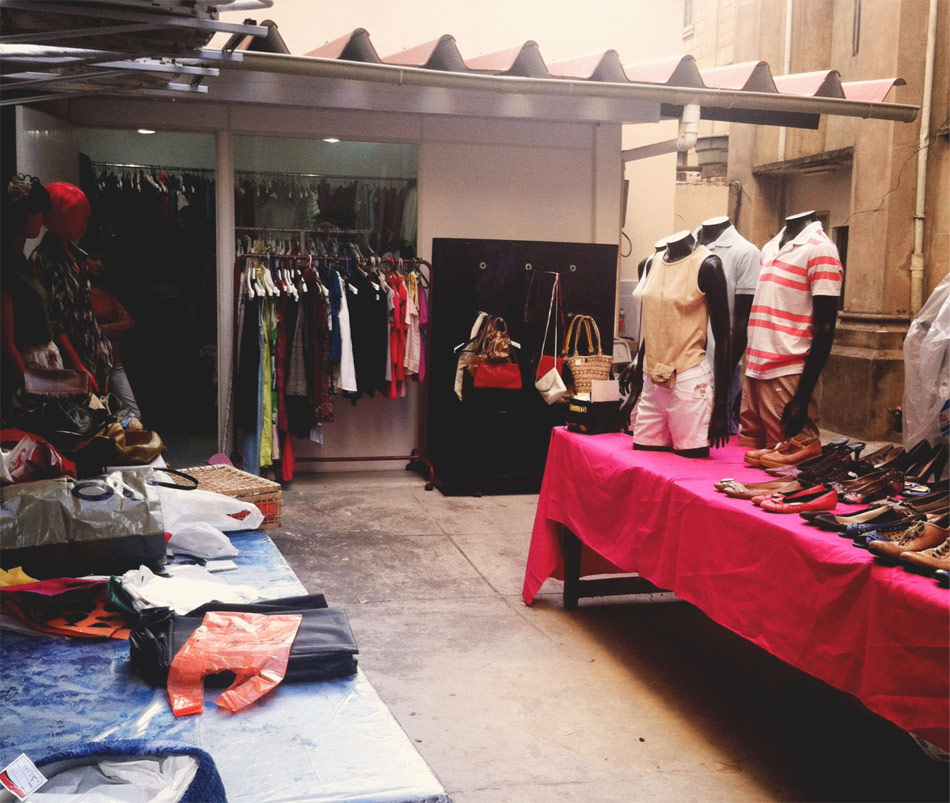 Parece um bazar improvisado, mas é bem organizado e, no geral, limpo. Tem uma área com ar condicionado e provador, com divisão nas araras para vestidos de festa, blazers, ternos masculinos, camisas e calças. Avistei pouquíssimos acessórios e bolsas. Os preços são extremamente baratos: comprei um blazer tamanho 52 por 12 reais e um outro, de linho, por 14 reais.