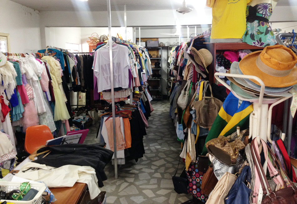 São muuuuitas roupa1234reciso paciência e tempo para completar o garimpo com sucesso, pois tem muitas bolsas, acessórios, roupas femininas e masculinas, vestidos de noiva (!), camisolas de vovós (!!!), roupas de época, dezenas de calças jeans e sapatos, tudo bem setorizado. É necessário observar com cuidado o estado das peças, pois algumas apresentavam manchinhas e mau estado de conservação.