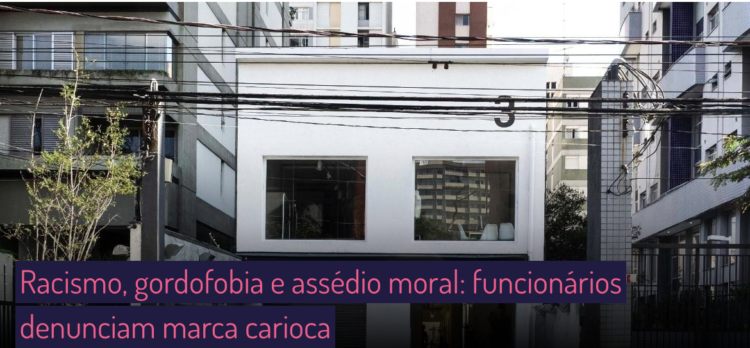 Hoje o nosso dia foi tomado com a denúncia do Universa Moda de racismo, gordofobia e assédio moral da loja Três, marca carioca que mantinha o slogan “Três por vocês”, por desenvolver, de forma colaborativa, coleções com influenciadores, profissionais da moda e artes, em uma velocidade digna de fast fashion. A marca, cujos donos são a mãe, Guta Bion, e seus dois filhos, Francisco e Fernanda Bion, passou a ficar hype no instagram, e, recentemente, investiu no público paulistano com duas lojas na capital, sendo uma dentro do JK, shopping de alto luxo.