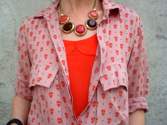 8. Amei a combinação!!! Eu simplesmente amei essa camisa no dia que vi pela primeira vez, e pensei “poxa, não tem c&a na minha cidade, nunca vou ter uma camisa assim… Aí semana passada passei na pernambucanas (que tem aqui) e vi uma camisa nessa cor, parecida com essa, só que não tem gola e tem um babado ao longo dos botões. Custava R$50, e eu não levei! Por fim, ontem passei lá e a mesma camisa tava por R$19,90, aí sim falou minha língua, arrematei na hora!! Quase mandei pros achadinhos das leitoras hahah