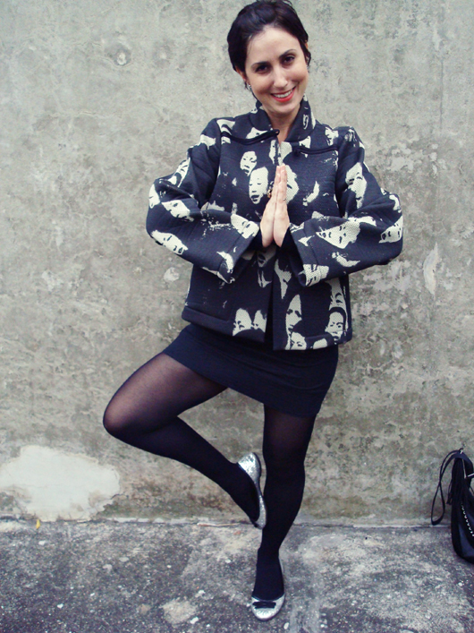 Aeee, voltamos às postagens normais, viram? Nada de pânico, meninas! hahaha! E como toda volta à rotina, mais uma segunda-feira na correria, escolhendo roupa em cima da hora, hehe! E com as temperaturas mais baixas por aqui, resolvi tirar do armário esse casaco-quimono que comprei na loja do meu queridinho Ronaldo Fraga, em Belo Horizonte, há alguns anos. Eu AMO esse casaco, acho uma das peças mais originais do meu armário e também uma das mais caras (!!). Na total falta de tempo pra me arrumar, só pensei em um look clássico, pretinho básico – e gostei!