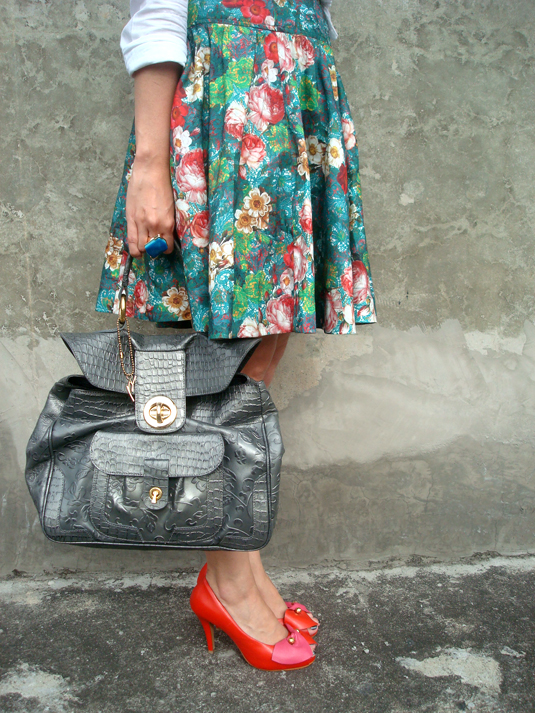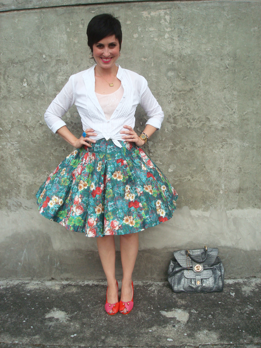 Essa saia é muito linda!!!! Trocaria a bolsa por uma cor mais neutra.
