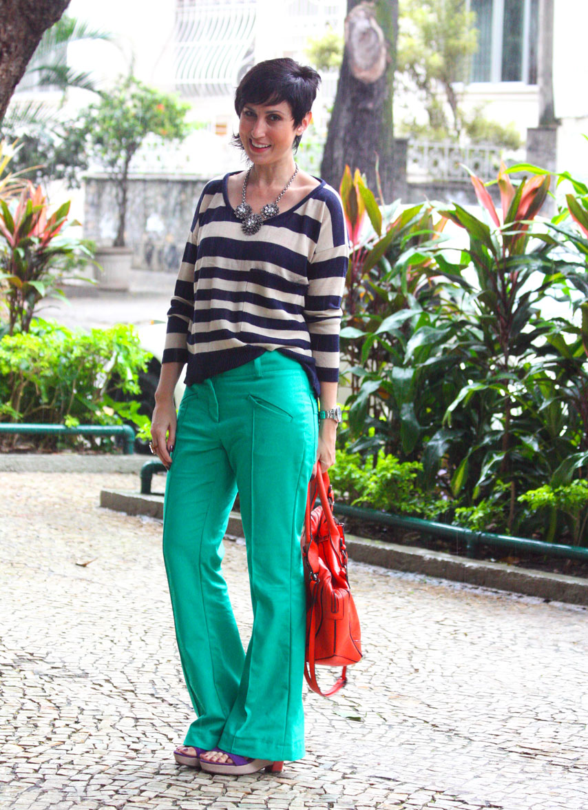 Massss, vamos fingir que o dia estava super propício para o look com sandália anabela e calça verde, hahaha, porque eu amei o contraste de cores! Estava louca para estrear esse tricozinho que comprei no saldão da Mercatto no sábado. Ele é bem ok, bom pro dia a dia e, pelo preço, considerei um achadinho! Vamos ver após a primeira lavagem como ele fica. Uma leitora no instagram descobriu que ainda tem à venda no site deles, quase 10 reais mais caro, mas pra quem se interessar… ele é tamanho único 😉