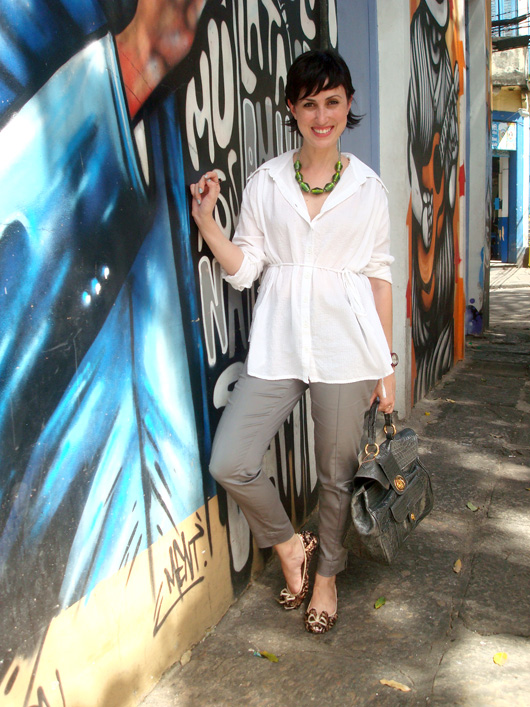 pra mim foi o seguinte: a sapatilha não rolou com o colar! não sei se vc já combinou os dois antes, mas tanto eu prefiro o look cobrindo a sapatilha com o deod (na tela do computador hehehe) e imaginando alguma sandalhona mais étnica e pesada, quanto gostaria cobrindo o colar, e imaginando algo que desse uma cara mais “estruturada” à blusa, que é muito largadona… ou uma biju com cores mais sóbiras como preto, marrom, e dourado e prateado… não sei por que! hehe acho que sou fissurada em padrões… desculpa a carta, e se vc não concordar tb!
