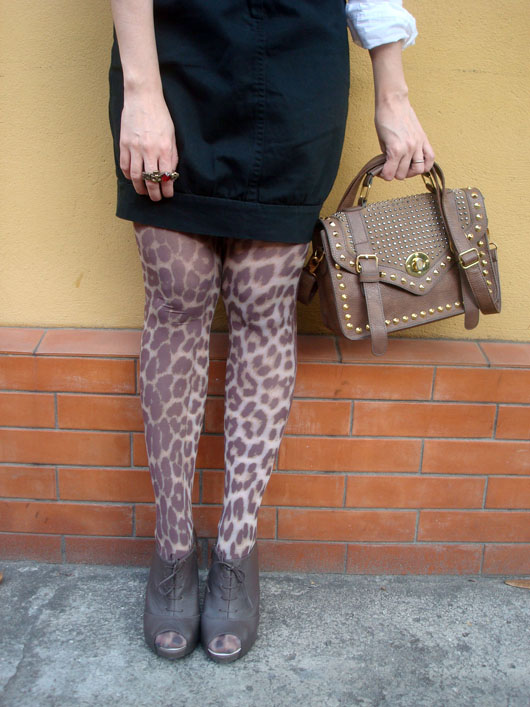 Hoje eu acordei mais clássica, não queria inventar muitas combinações, deu um pouco de preguiça por conta do frio (blé, acordei chata mesmo, nada me agradava, haha). Mas pensei em retirar das cinzas a minha meia-calça estampada (ainda não sei se é estampa de onça ou de girafa, hehe) para deixar o look mais tchans. Nesse inverno eu andei torcendo o nariz pras meias-calças coloridas e estampadas, acho que enjoei um pouco delas. Mas uma coisa é fato: são curingonas nesses dias mais frios, quebrando a rigidez das produções mais caretinhas e dando mais cor ao inverno.
