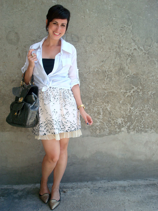 Vasculhando meu armário, reencontrei esse vestido tomara-que-caia que tem uma pegada que lembra aquele outro vestido com frufru na barra, da C&A. Só que ele é menos carregado no açúcar do que o da fast fashion: a estampa é mais divertida que fofa; ele simula um top+saia; por ser em preto e creme a roupa fica menos “menininha” e a saia é mais compridinha do que o outro. Por conta dessa semelhança sutil, aproveitei aquele tema da semana passada, de deixar a roupa mais “adulta” e o apliquei para o vestido de hoje também.