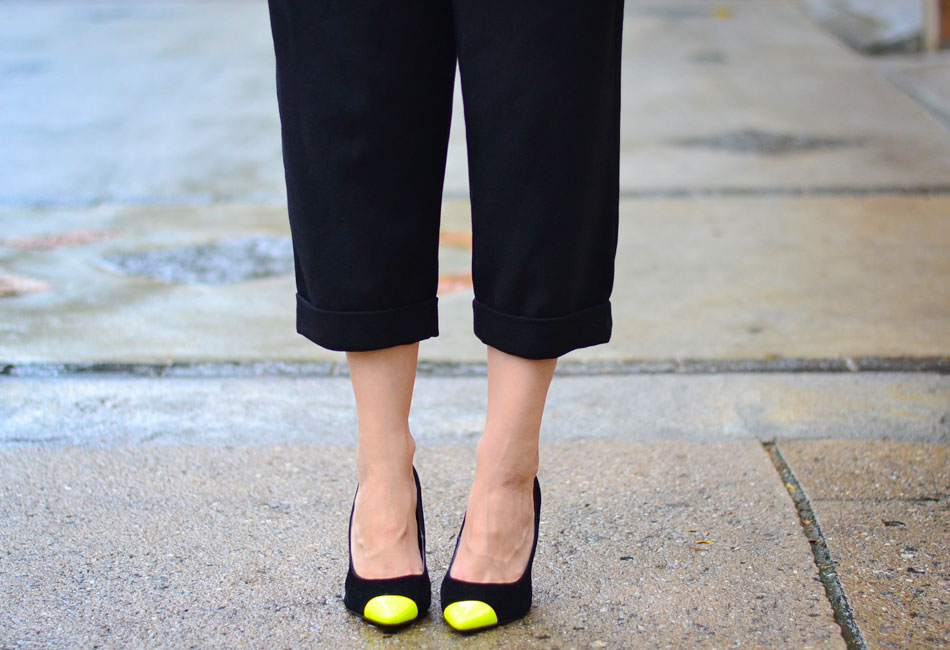 Engraçado como esse sapato com a pontinha neon foi mmoda há pouquissimo tempo atrás e ninguém mais usa. Achei que deu um pontinho de “Ana” nesse look mais “sério”.