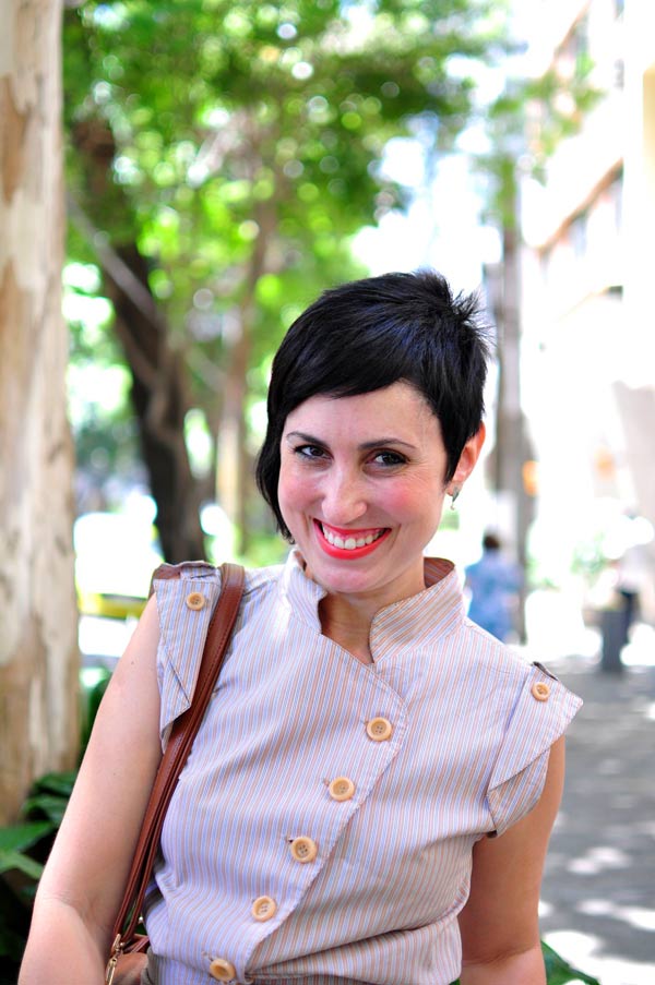 – Essa saia está com a barra torta! E eu: – Não, ela é assim mesmo!