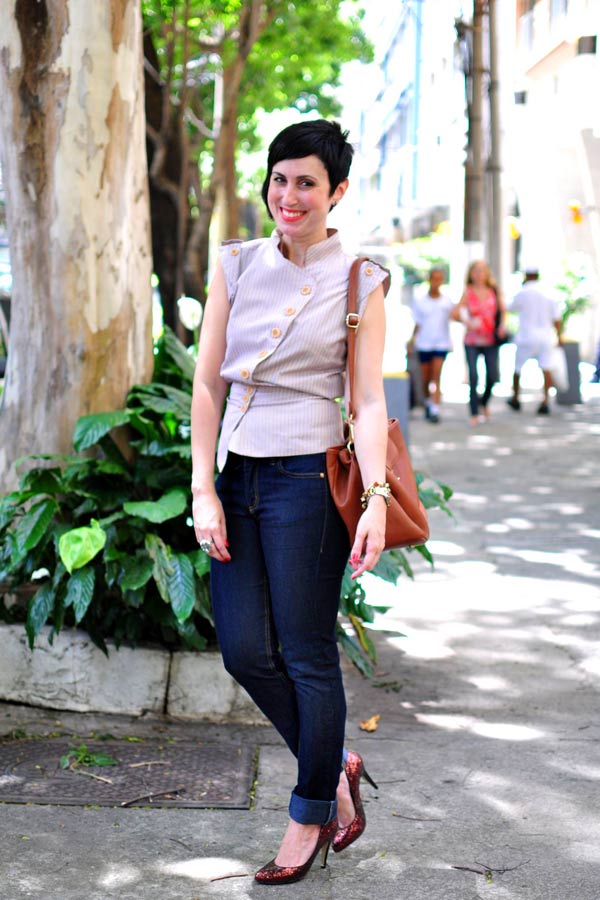 Ana, adorei a blusa!!! adorei o look!! E uma dica:Será q não dá para mudar os botões de lugar para ela abrir mais na cintura? acredito q a modelagem dela é q não esta muito certa. Bjs!!!