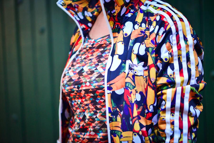 Acho que já está todo mundo careca de ver por aí meio mundo vestido e falando das estampas que a Farm desenvolveu para a Adidas e que estão sendo comercializadas mundialmente. Algumas pessoas dirão que é modinha, que todo mundo vai sair igual na rua…e pode ser isso, sim. Mas também acho muito bacana quando identificamos o que realmente gostamos e percebemos ali não só modismo, mas uma vontade de fazer parte, de usar e ter no armário por muitos anos. 🙂 Não, não tenho medo de encontrar alguém com a mesma peça, juro.