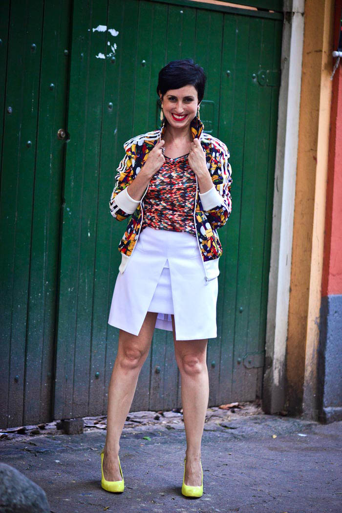 A primeira produção bem Brasil, bem over de cores e formas. A gente vive num país tão colorido e cisma só com preto, cinza e branco, numa tentativa à prova de erros…tão bom se colorir! 🙂
