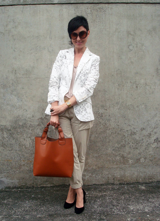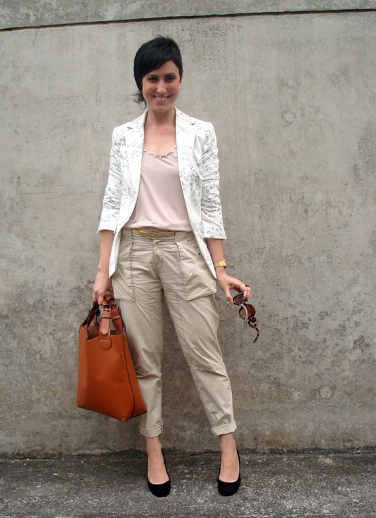 Acho que o que atrapalhou muito foi o comprimento do blazer e que seu look sem ele ficaria uma graça! Pode ser até piração minha, mas não gostei dele nesse comprimento com esse tipo de calça… Confesso que babei e quaaaaase comprei ele (também!) na remarcação, mas achei que teria dificuldade para coordená-lo com peças que não fossem brancas ou pretas… o que, no meu caso, restringiria MUITO o uso.