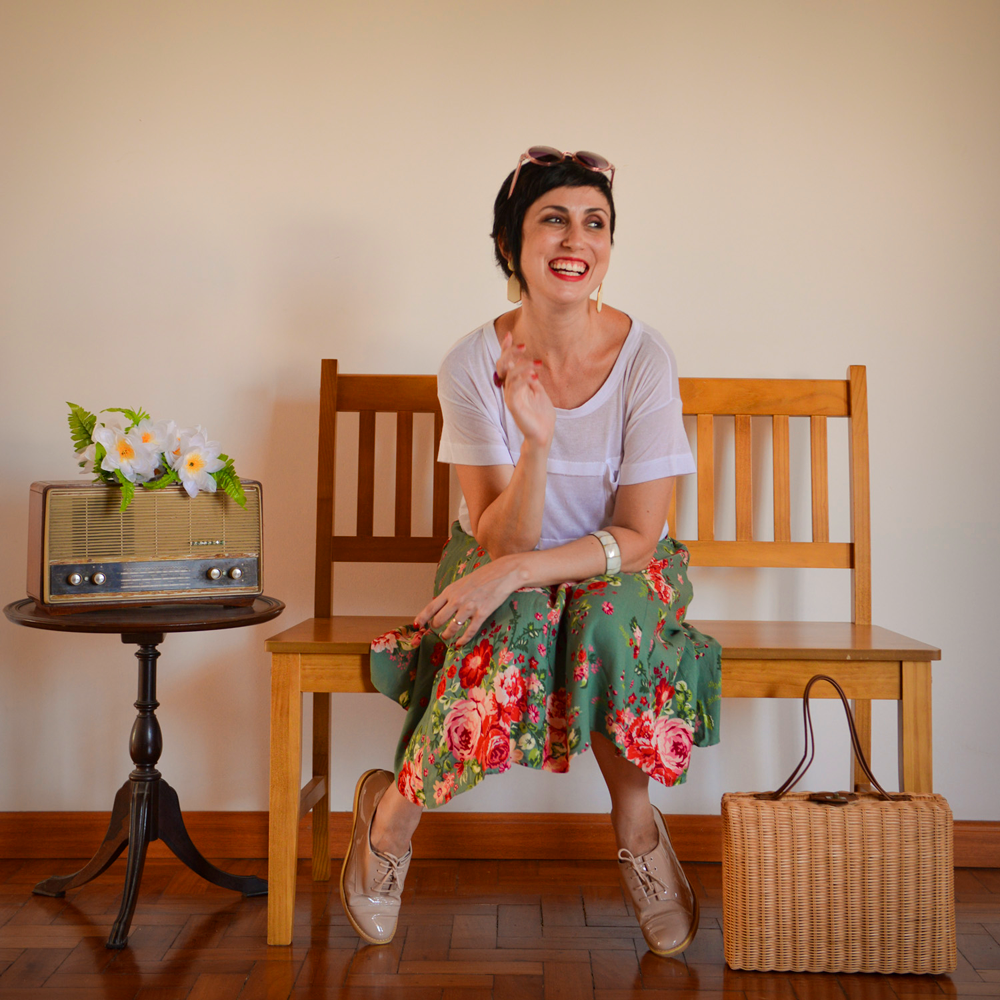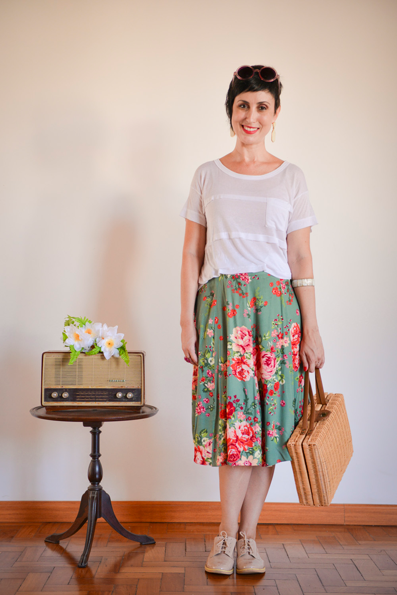 Que quiser sugerir outras ideias de blusas (fresquinhas, lembrem do calor, rs) pra essa saia, eu aceito! 🙂 E o que acharam do visual retrô fofo das fotos? 🙂