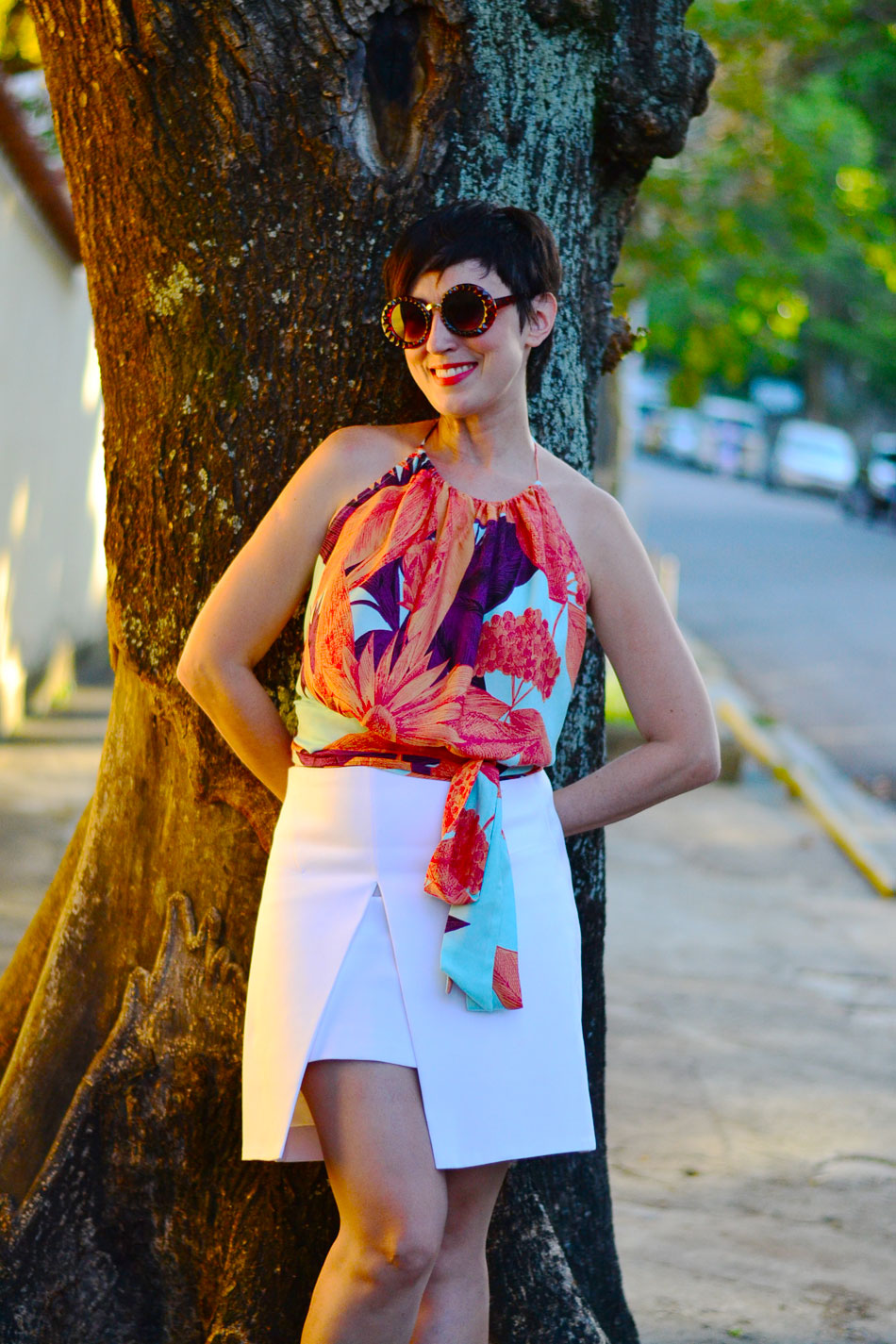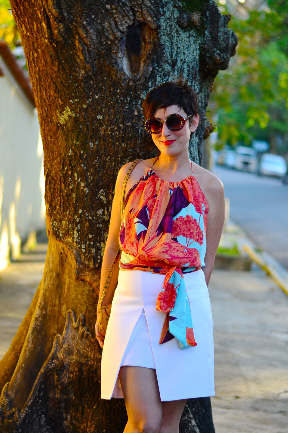 Estou obsessiva com a combinação de blusa estampada + parte de baixo branca, vocês já devem ter reparado, rs! Semana passada só usei isso e essa semana, sinto informar, continuarei repetitiva no tema. Acho que tem sido tão difícil pensar nesse calor absurdo que eu realmente estou preferindo a facilidade da combinação!
