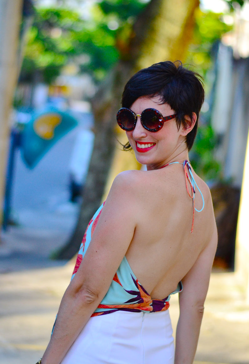 Eu estou apaixonada por essa blusinha frente única, comprinha recente de uma loja super achadinho no Leblon (pra Leblon, eu achei pelo menos)! A estampa e as cores são maravilhosa1234olta do modelito que deixa nossas costas nuas é mais do que bem vindo pra ver se pelo menos refresca um pouco a situação, hehe, mas sem deixar de ficar gatcheeeeenha! =D (usei tanto frente única nos anos 90 e 2000! #idosa)