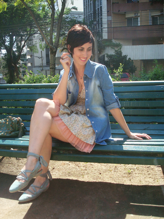 Usei este look em um domingo e pedi pro meu marido fotografá-lo. No espelho eu gostei dele, mas nas fotos torci um pouco o nariz – não sei se é porque eu estou numa fase meio “básica” que me faz não estar mais afim de usar vestido com esse tule na barra da saia. Estou procurando uns modelos mais clássicos, acho que com 32 anos na cara eu to encaretando, será? hahaha! Na verdade não sei se clássic1234elhor palavra, mas o fato é que estou em busca de peças mais estruturadas, com estampas mais adultas e menos “florzinhas”, “passarinhos” e afins.