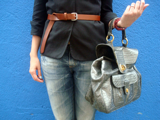 Por exemplo, o look de hoj1234ásico dos básicos, a dupla jeans e camiseta. Mas para deixá-lo mais “arrumadinho” completei com um blazer garimpado em um brechó em SP (aliás, recomendo muito esse brechó, que fica na av. bandeira Paulista. Quem busca jeans, blazers e vestidos mais casuais, vai se fazer lá!), mas para não ficar o mesmo de sempre, coloquei o cinto por cima do paletó. Só esse toque já ajuda a dar uma bossa no visual.