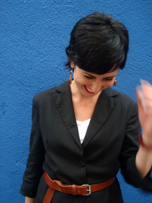 Eu optaria por colocar o cinto na calça mesmo e deixar o blazer aberto para manter o esquema das cores. Por falar em cores tbm optaria por outra bolsa (tipo aquela sua do e-bay usada no look de ontem), pq acho que ornaria melhor com o estilo dos acessórios e acho que o tom seria mais harmônico com os sapato, o brinco e o cinto.
