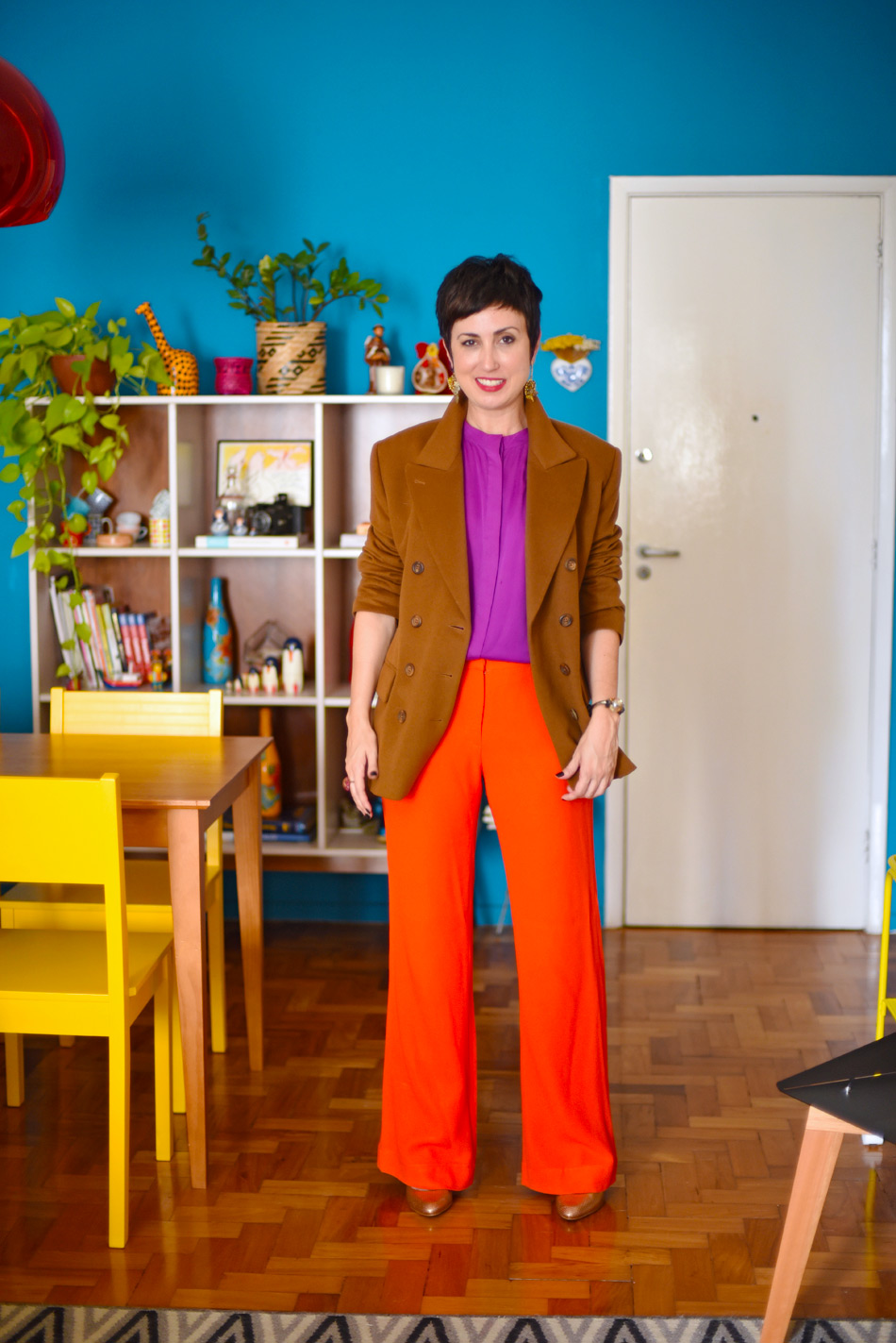 O look de hoje não tem nada a ver com essa estação, mas fizemos a produção pensando mais em uma sugestão atemporal (e, sim, sempre que eu puder eu vou ignorar que é verão, hahaha). Aliás a coordenação dos tons ficou elétrica, acesa e eu adorei isso! Coloquem os óculos escuros para evitarem ofuscar a vista de vocês, hehe!