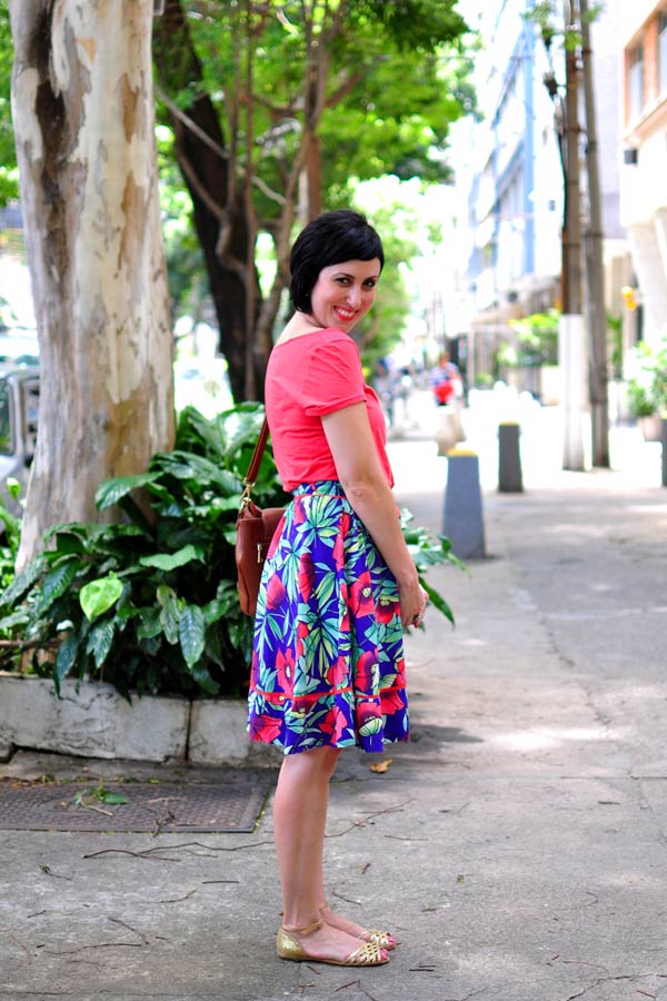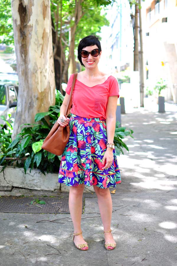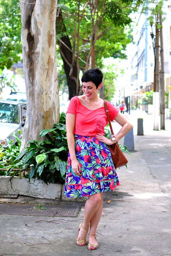 Comprei essa saia num surto (porque né? meio cara) em 2011 ou 2012, agora não lembro, achando que não tinha nada muito interessante pra usar nos dias de extremo calor. Pois bem, estou constatando que alguns surtos foram muito proveitosos: definitivamente, não preciso de roupa para o verão. Fiz um inventário do que eu tenho para a estação mais quente do ano e tá tudo de bom tamanho. Minha ideia é aproveitar que não aguento usar quase nada quando estou morrendo de tanto suar e repetir de forma criativa o que eu já tenho.