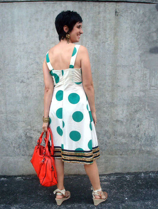 outra coisa que me incomoda é que na parte de trás o tecido não “casa”. tem umas bolas cortadas na emenda. até entendo que seria impossível casar tudo em todos os vestidos produzidos, mas confesso que visualmente me incomodou..