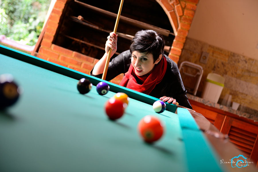 Não sou nenhuma expert, mas jogo bem levando-se em conta que nunca joguei sinucão (aquela do mesão grande, oficial!), mas já botei marmanjos no bolso e fui decisiva em várias situações, hahahaha.