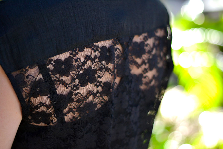 Quando estive na Riachuelo em SP, garimpei algumas peças e uma delas (além do colar da Hora da Aventura, cla-ro), foi esse macaquinho com renda nas costas. Achei uma graça e uma alternativa bacana para os dias calorentos do Rio! Ele é mais soltinho, só com a cinturinha marcada e daí preciso colocar uma blusinha/camisete por baixo.