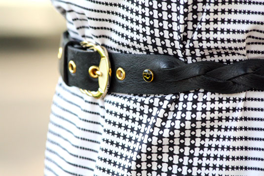 Em vestidos assim, eu sempre prefiro os cintos e não as faixas que vêm com eles. Acho que um cinto faz toda diferença! Aí, por exemplo, ficaria bacana também um cinto colorido e uma bolsa preta.