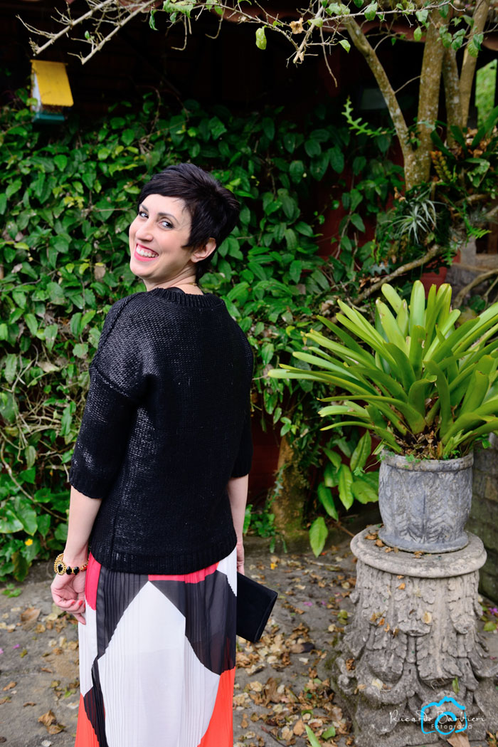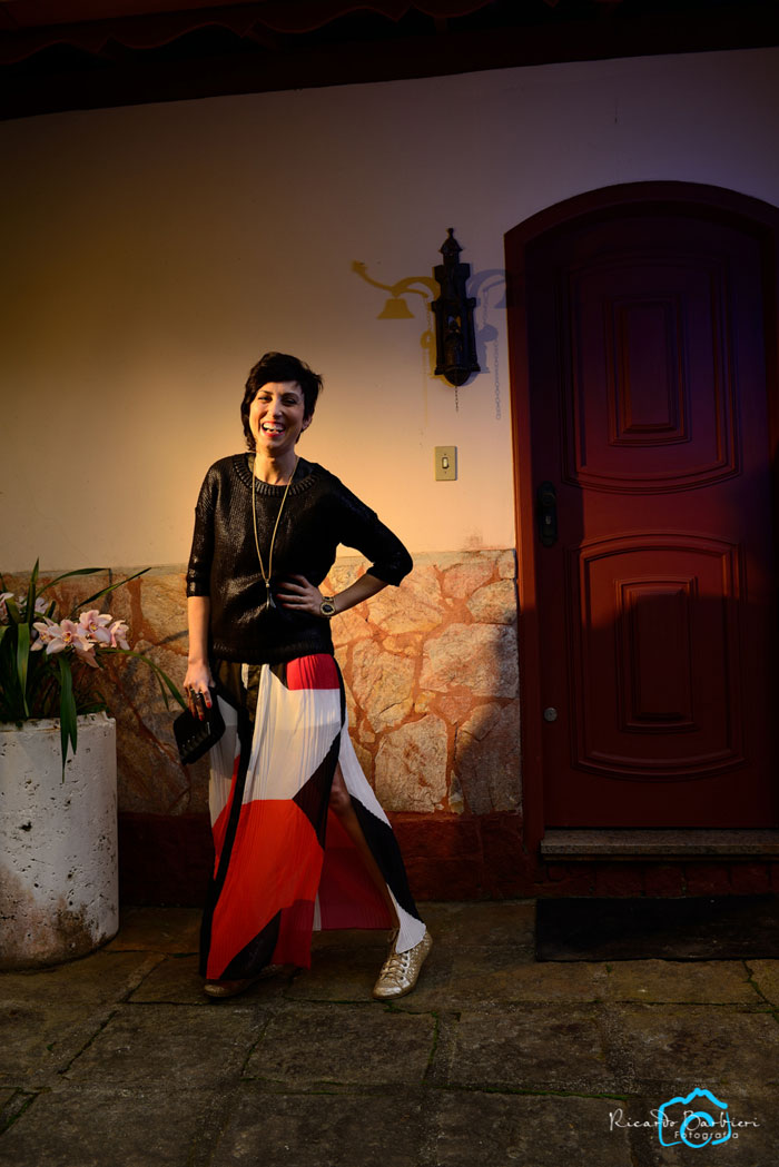 Sei que para algumas pessoas de fora do Rio seja mais difícil visualizar look descolado de festa e tênis no mesmo contexto, mas já fui em uma em que todo mundo estava de chinelo, então tênis é lucro, minhas amigas…hahaha! Claro que um scarpin ou sandália super funcionariam, mas para que seguir um padrão sempre se podemos ser nós mesmos, não é? 🙂 A intenção foi fugir do óbvio com uma peça mais inusitada no conjunto 😉
