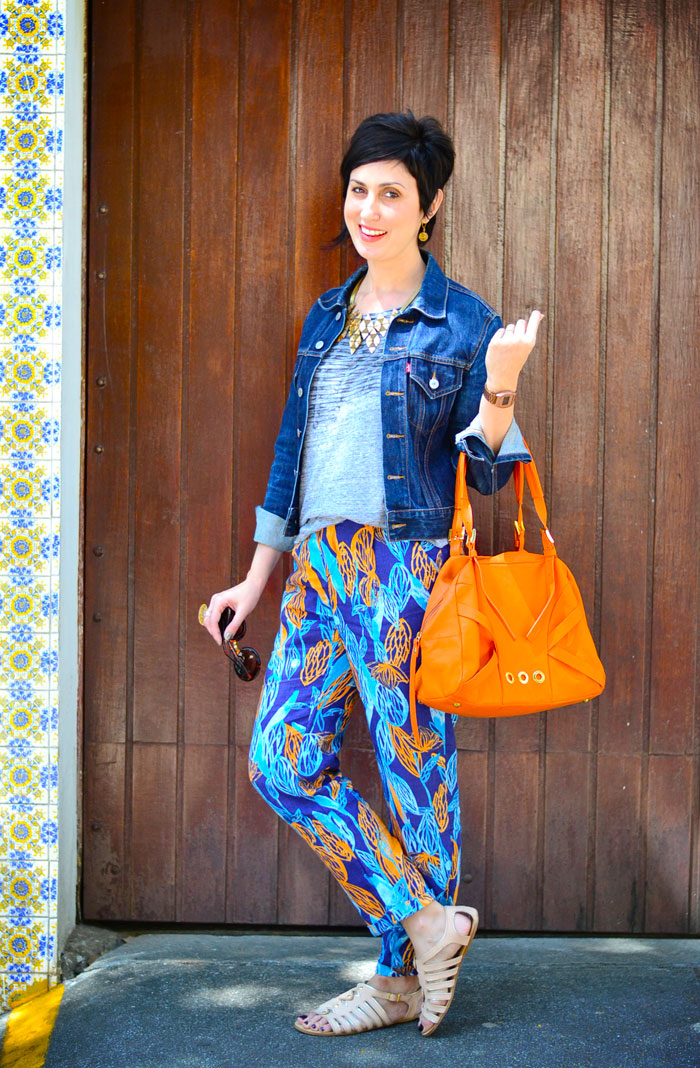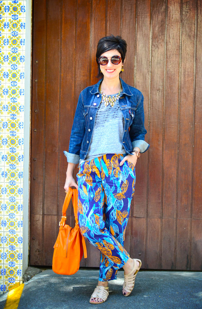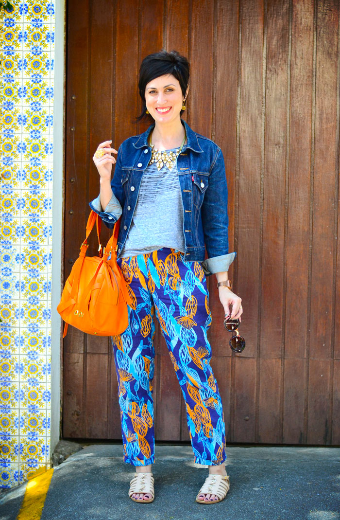 Em tempo: AMEI esse look! Acho calça estampada assim o máximo! Sua mistura de cores está muito motivante! E assim que der, vou comprar uma jaqueta destas pra mim! rs rs rsrs