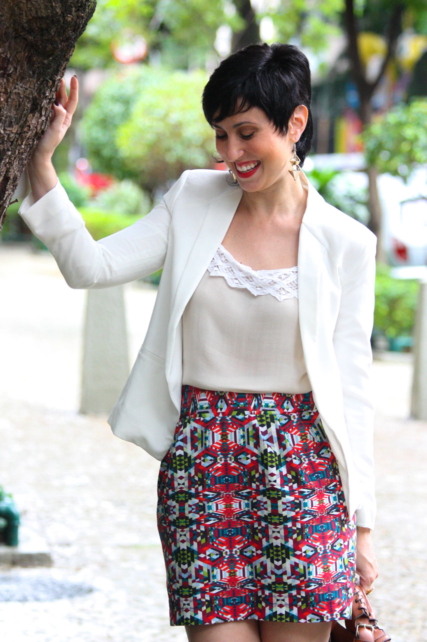 Adoooorei o look!! Geralmente as saias da mercatto realmente ficam um pouco durinhas, mas nesse caso não deu para notar e a estampa é linda! Agora, que blazer é esse?! Quero um também!