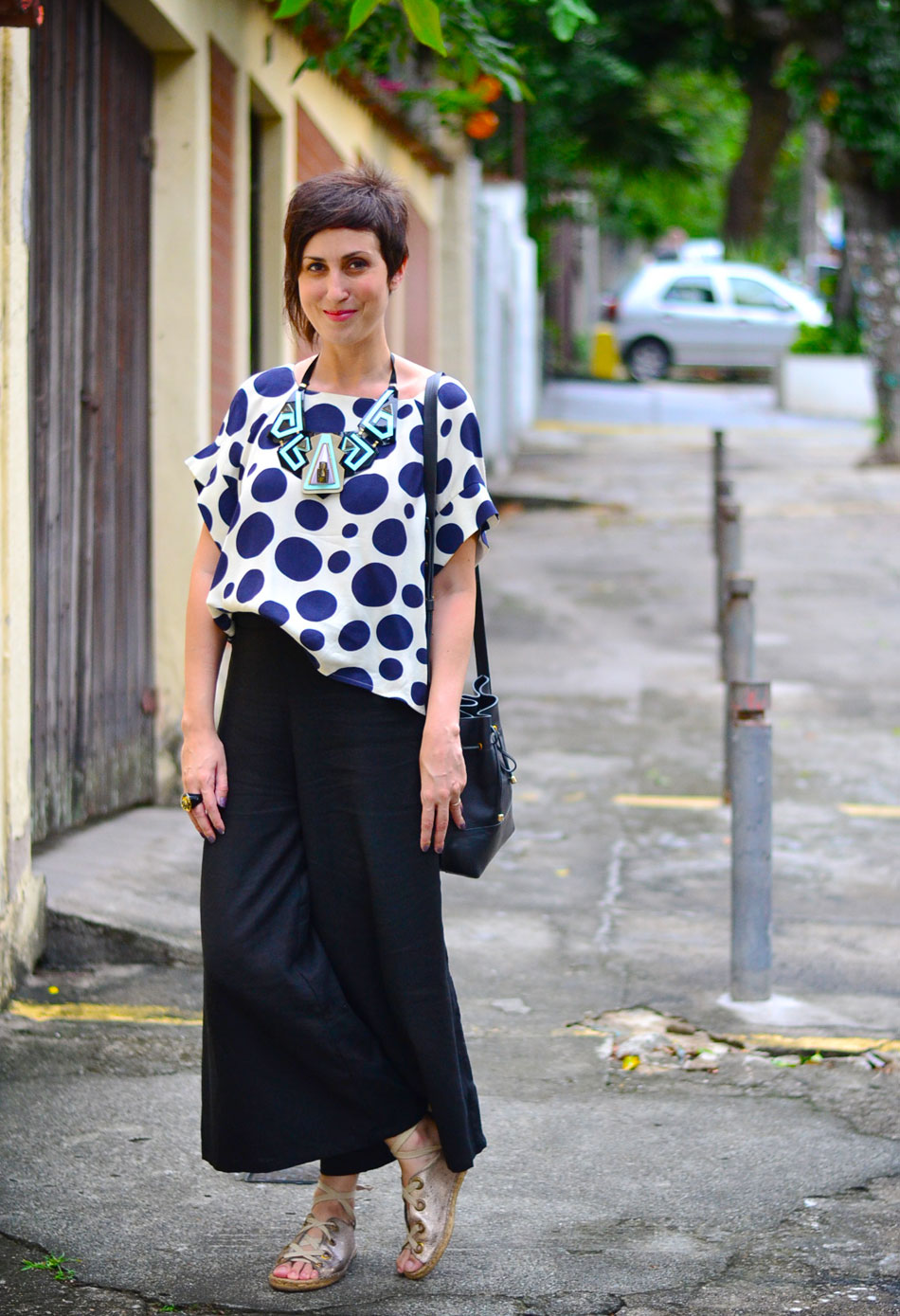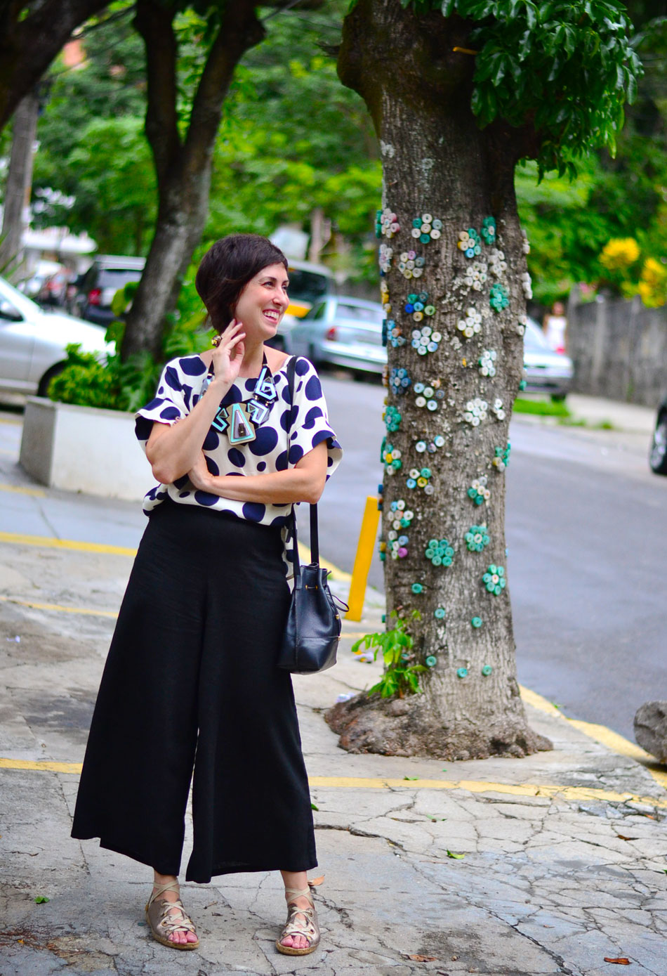 Na semana passada minha amiga me convidou para a abertura de uma exposição na Casa Daros (um lugar incrível aqui no Rio! Recomendo!) e eu tentei me vestir cosplay de crítica de arte HAHAHAHA! Brincadeiras à parte, fui confortável de silhueta larguinho + larguinho e um colar statement ou, em bom português, colarzão chamativo que eu amo! Ele foi o ponto de partida da produção e de novo ela, a blusa mais amor e maravilhosa dos últimos tempos dá as caras por aqui! 🙂