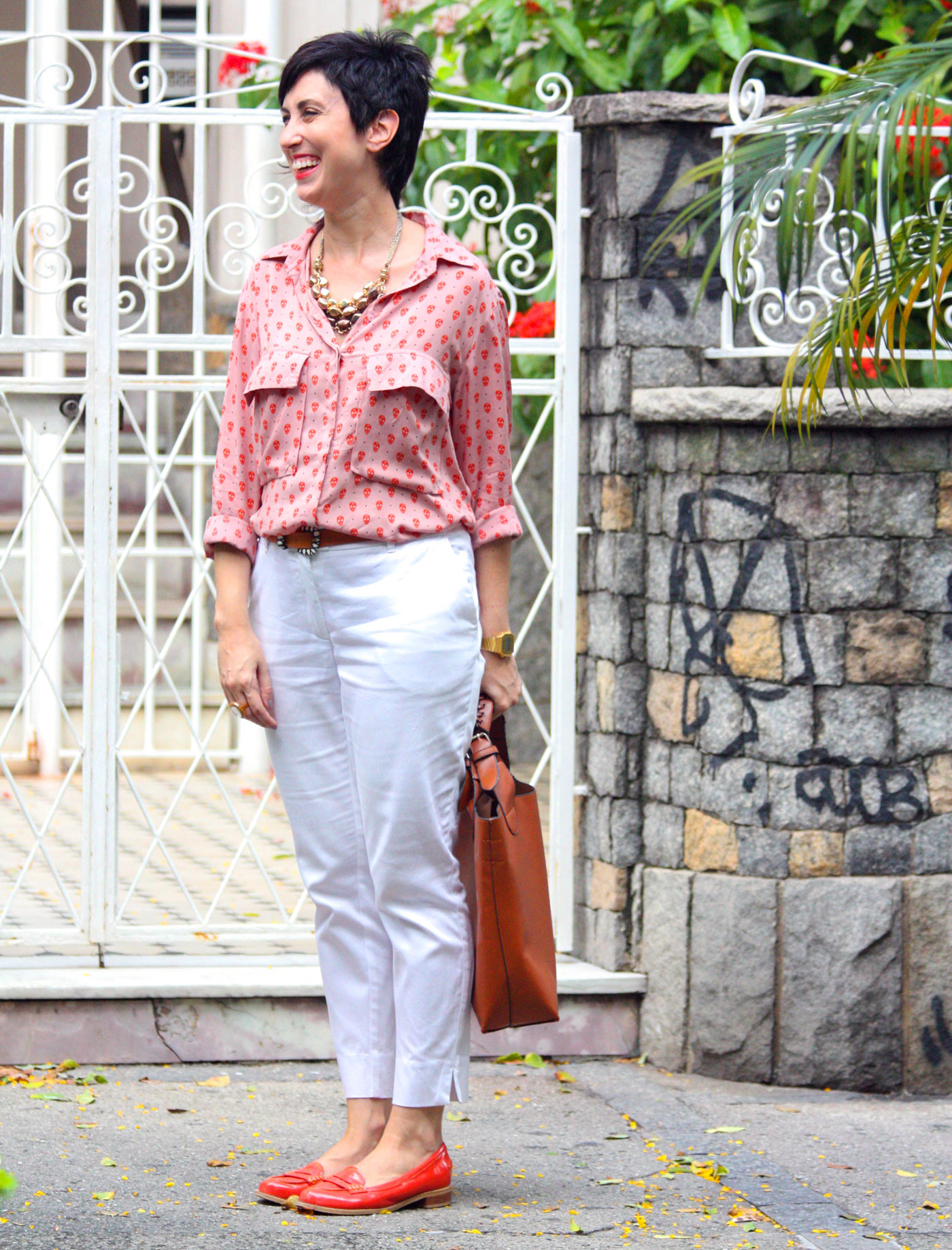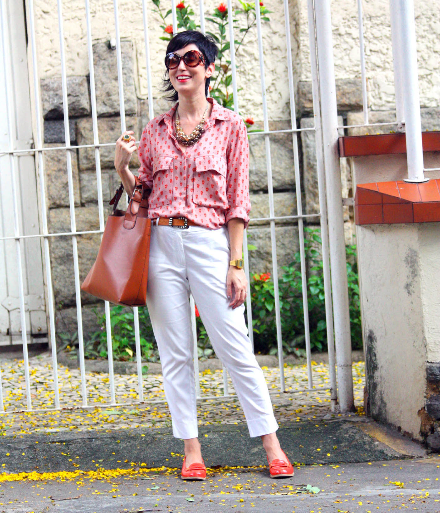 Botei ela pra jogo nesse post do Comprei e nunca usei e várias leitoras sugeriram usá-la com calça branca. Lembrei das sugestões nesse dia, viram só? 😉 Assim…eu gostei, mas não morro de amores por esse rosa não. Queria também a opinião de vocês!