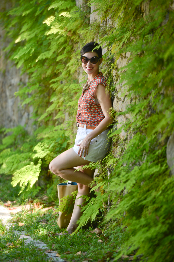 O look de hoje se valeu novamente do artifício de sair da caixinha do propósito original da roupa e fazer novos usos dela. Ou seja: mais um vestido que virou blusinha! 🙂 Sempre me perguntam como faço pra enfiar um vestido dentro de um short, mas é simples, eu juro: escolha um vestido de tecido levinho, mais ajustado e prenda ele por dentro, na lateral da calcinha, por exemplo. Eu uso por dentro de saias amplas ou calças e shorts que sejam boyfriend, mais larguinhos, e de tecido mais grossinho, como brim, para não marcar tanto. E pronto! 😉