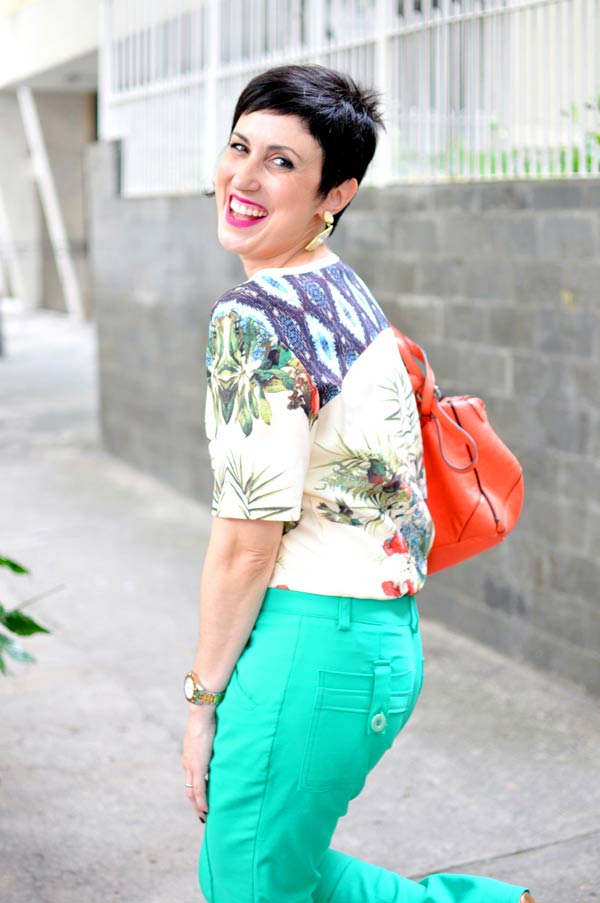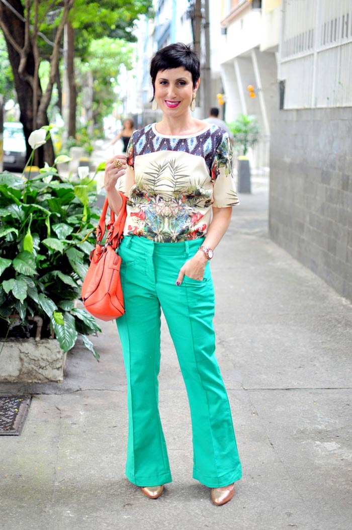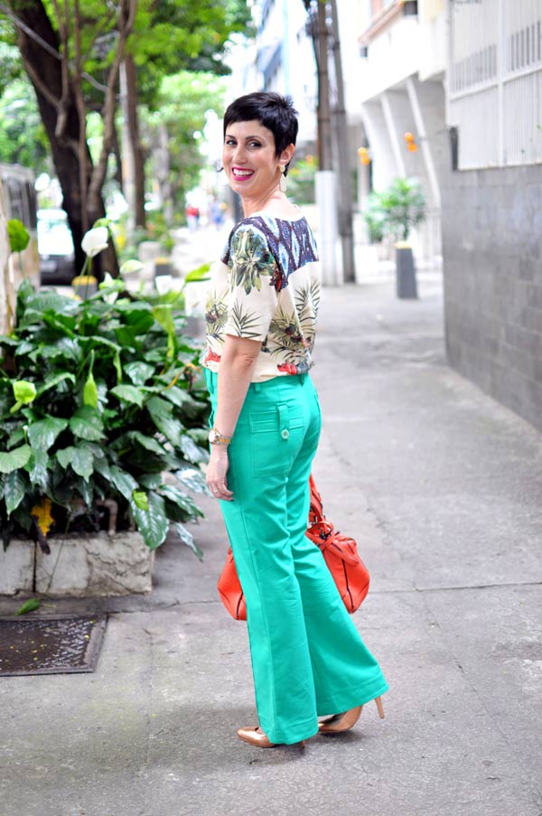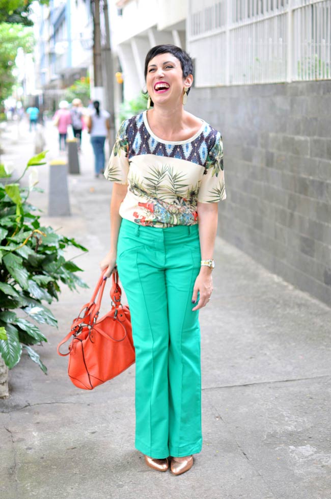 7. Bonita a estampa do vestido, mas esta calça não gosto nada, te deixa quadrada.