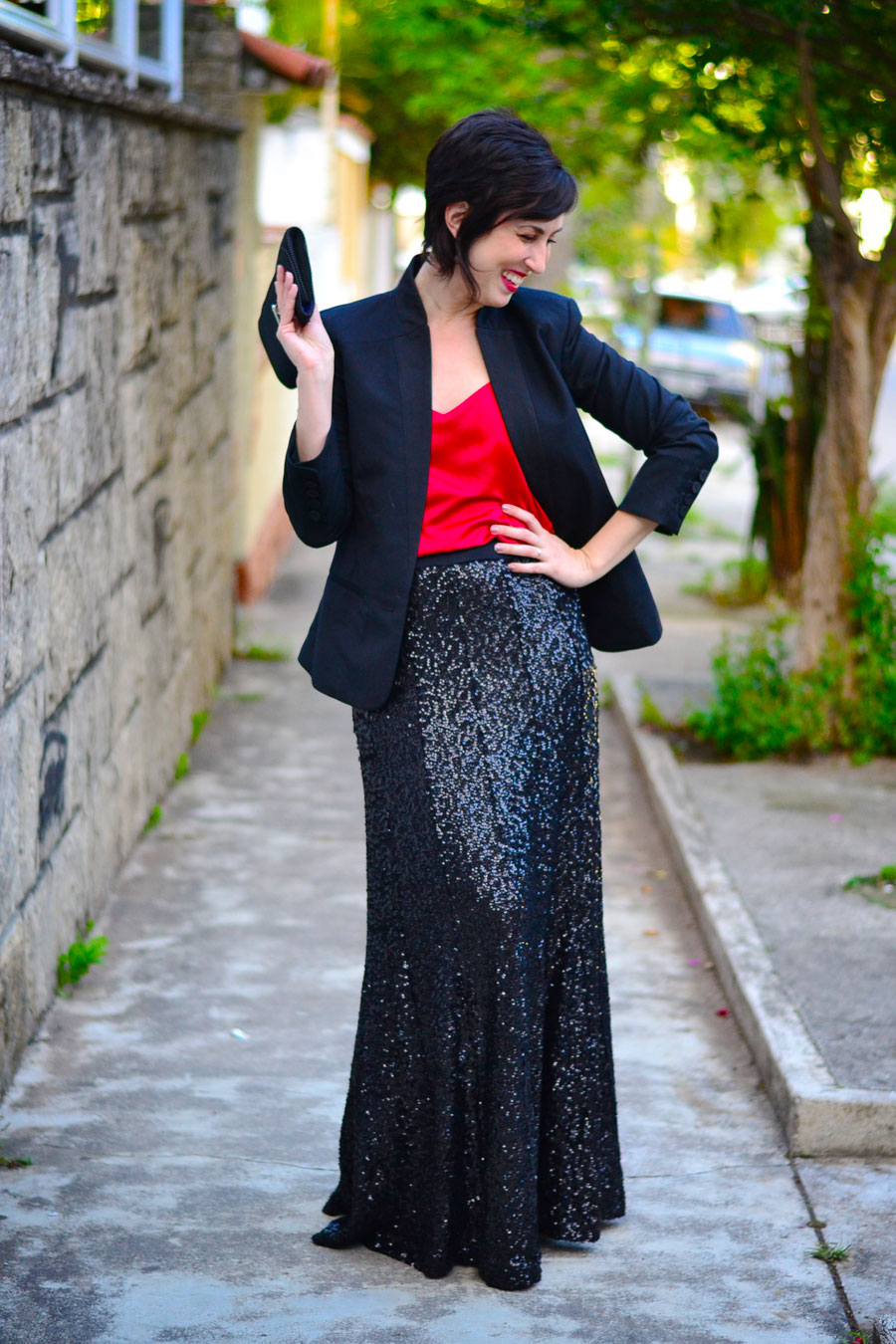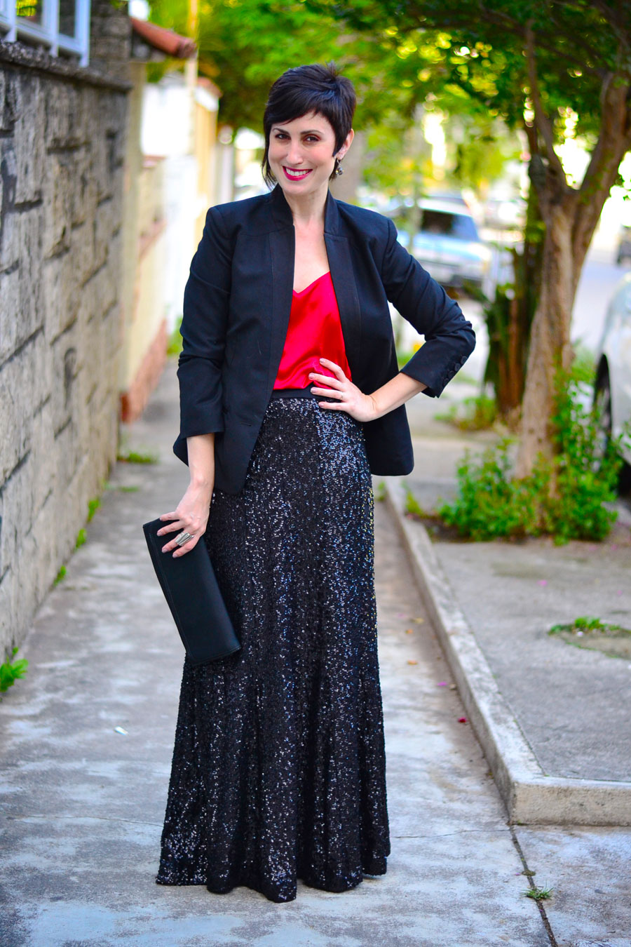 Essa saia é um acontecimento, não tem outra definição pra ela! Lembram que sou aloka dos paetês? Pois ela é uma das principais peças no meu guarda-roupa hoje: adoro essa modelagem meio sereia, esse peso que a deixa com um caimento divo, o movimento que tem quando eu caminho. Sério, estou quase indo com esse look pra um boteco mesmo (#realidades) porque eu fiquei encantada ao usá-la, haha!