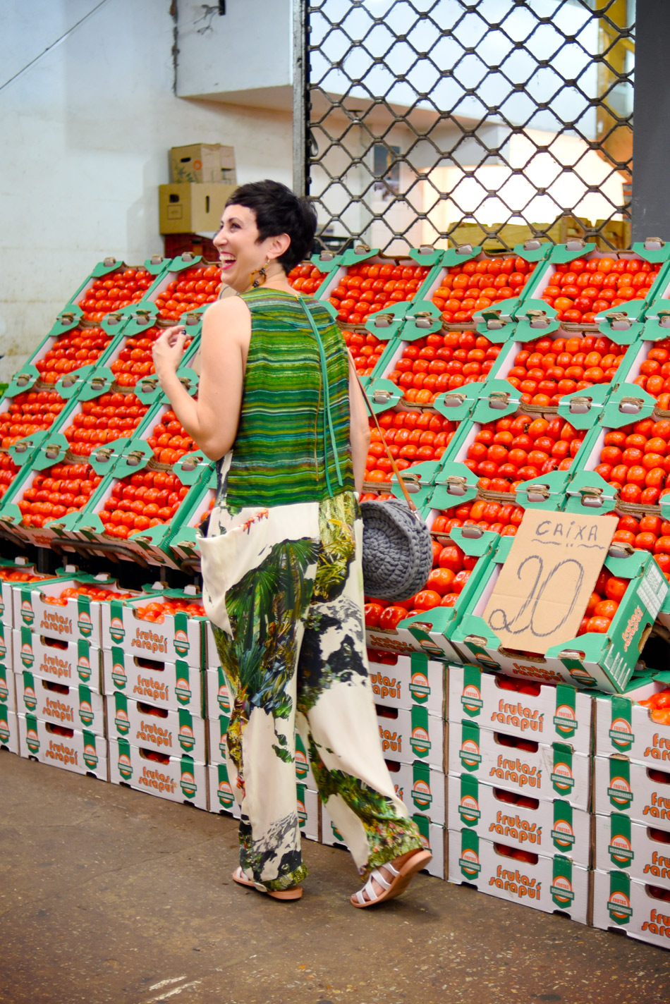 A escolha do local das fotos também foi nessa pegada mais colorida e despojada, sem clichê de cenário maravilha – enaltecendo o que se é rotineiro em nossas vidas. Clicamos vários looks na CADEG, ou Centro de Distribuição do Estado da Guanabara, que é dessas joias históricas do subúrbio carioca, que oferece o que há de melhor em hortifruti, vinhos, azeites e da culinária portuguesa.