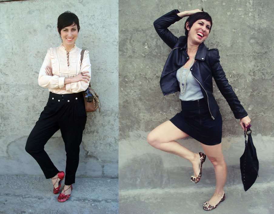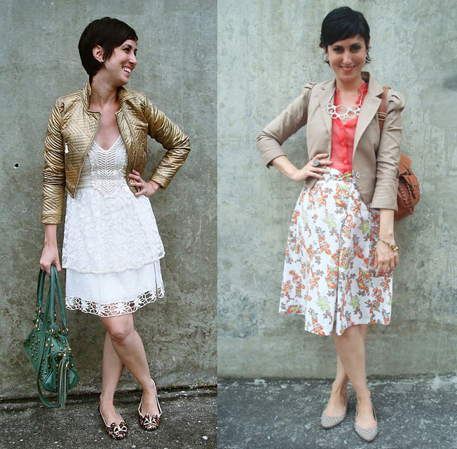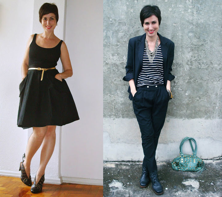 Look de 2010 e 2011, respectivamente: mais uma vez, estrutura com acessórios mais contemporâneos – olha meu scarpin de peixe ali! Ainda tenho os sapatos, a calç1234lusa, acreditam? hahaha!