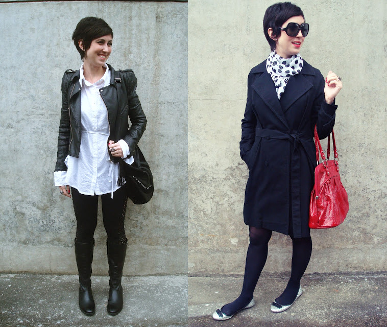 Esses também são de 2011 e eu usaria todos os dois exatamente assim hoje em dia! Ainda tenho a camisa branca, a bota e o trench coat da coleção da Stella McCartney para C&A. Em ambos o contraste alto do preto e branco valoriza o meu contraste pessoal, além de serem cores da minha cartela.
