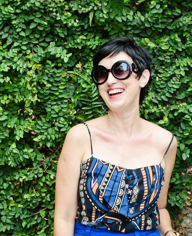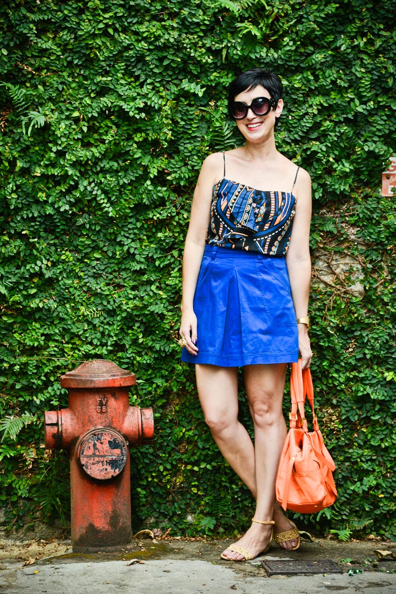 A blusa de alcinha estampada é beeeeem comprida (foto aqui!) mas, pra dar uma variada, coloquei por dentro da saia e ficou ótimo! O bom dessa blusinha é que ela ainda vai render mais looks com calça, jaqueta e blazer. 🙂 Estou aguardando ansiosa por esse momento! hahaha (mas não pagaria de novo esse valor nela. Acho que pirei nesse dia, me deem um desconto).