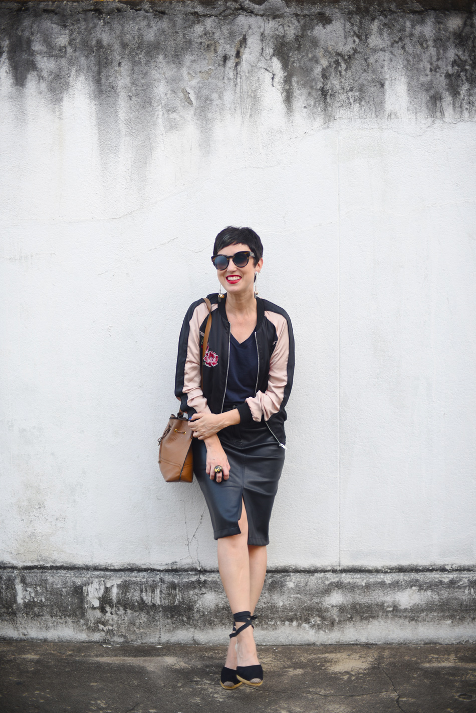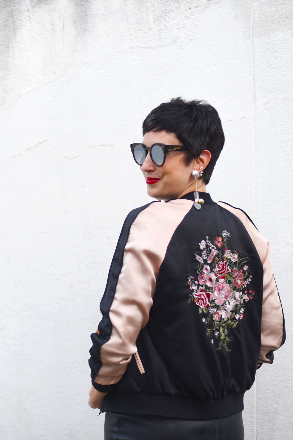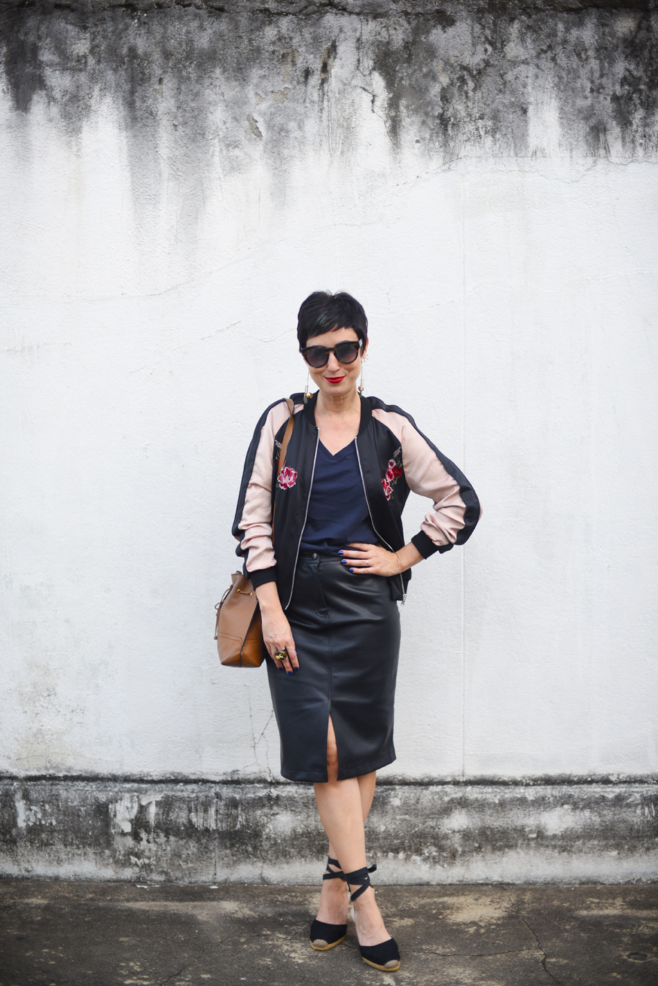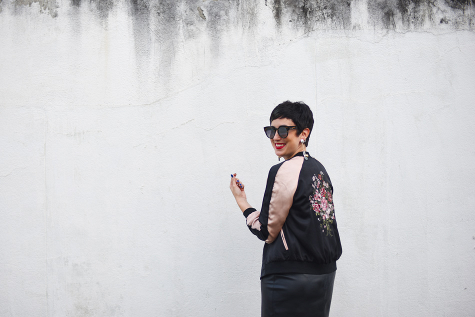 Gente, eu usaria esse look todo sem tirar nem pôr! E adorei a bomber! Achava uó no começo, hahaha, confesso. Mas hoje namoro essas de cetim mesmo, justamente por serem mais “leves” visualmente, não ficarem infladas.