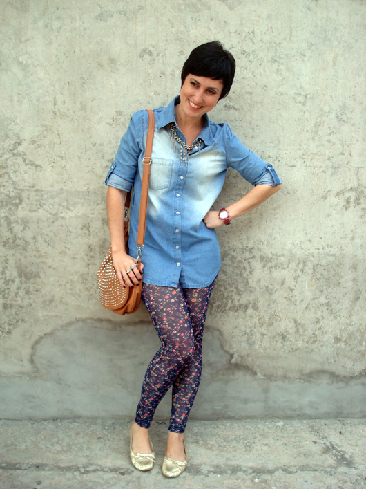 Pós-feriado e eu convicta que hoje era um revival da segunda-feira! hahaha! Apesar de estar num super alto astral, decidi ficar relax e confortável no look de hoje, sem preocupações em passar e escolher roupa, principalmente! Por isso decidi usar essa legging de tule super primavera e claro que eu tinha que coordená-la com o mocassim dos meus sonhos (ainda mais pelo preço, hehe). Um blusão jeans beeem despretensioso deixou o look descontraído, com cara de domingo, bem tranquilona!