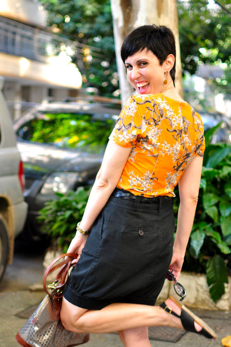 Bom, preciso dizer que não morro mais de amores por ela, acho que hoje em dia já tenho peças melhores no meu armário, mas vamos deixar a saia aí, como lembrança de boas e antigas garimpagens. 🙂 Pra ir trabalhar ela tá óóóóteeema!
