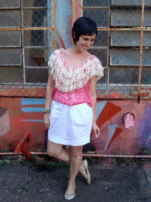 Essa blusa foi garimpada em um brechó na minha última ida a SP e para mim foi uma excelente compra! Andava enjoada de rendas, mas nada como uma peça incrível como essa para fazer a gente mudar de ideia. Estava justamente afim de ter uma blusa baphônica como essa no armário 🙂