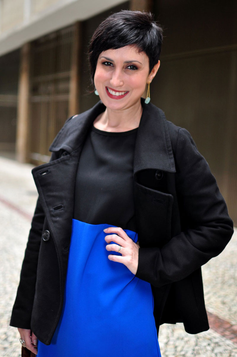 Bom, ele já estava separado pra doação até que, numa sucessão de tentativas frustradas de montar um look que realmente me agradasse nesse frio (e não fosse só cinza ou preto, já que não invisto em casacos coloridos por saber que não usarei muito aqui no Rio), vi esse vestido e pensei se ele não poderia ser o toque de cor realmente interessante que estava faltando nas produções anteriores. E não é que foi? Adoro azul klein e preto!