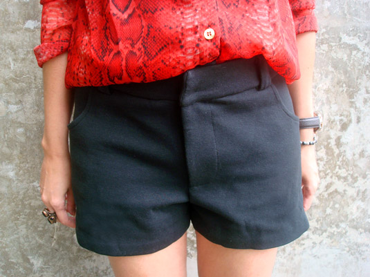 A Verônica, leitora do blog, foi quem me mandou o email recomendando esse achadinho que ela tinha feito na parte OFF do site da Dress to, que se chama Dress to vintage. Ela estava fuçando alguma peça bacana por um bom preço e tcharam! Lá estava ele: um short preto de alfaiataria, de algodão, forrado, por míseros trinta e três reais e ainda por cima tinha meu número. Ela mandou o link, não aguentei e, literalmente, paguei pra ver.