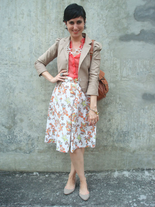 Já até comentei sobre isso, mas na época desses looks (idos de 2009-2010), havia uma tendência de estilos mais românticos nas lojas, com rendas, ombreiras fofas, estampas miúdas e delicadas, peças fluidas, cores mais lavadas.  Eu tinha muita dificuldade de usar essa saia, por exemplo, mas não sacava o por quê. Hoje eu compreendo mais sobre as minhas cores e meu estilo, que não combinam em nada com esse suspiro adocicado desses looks, hahaha!