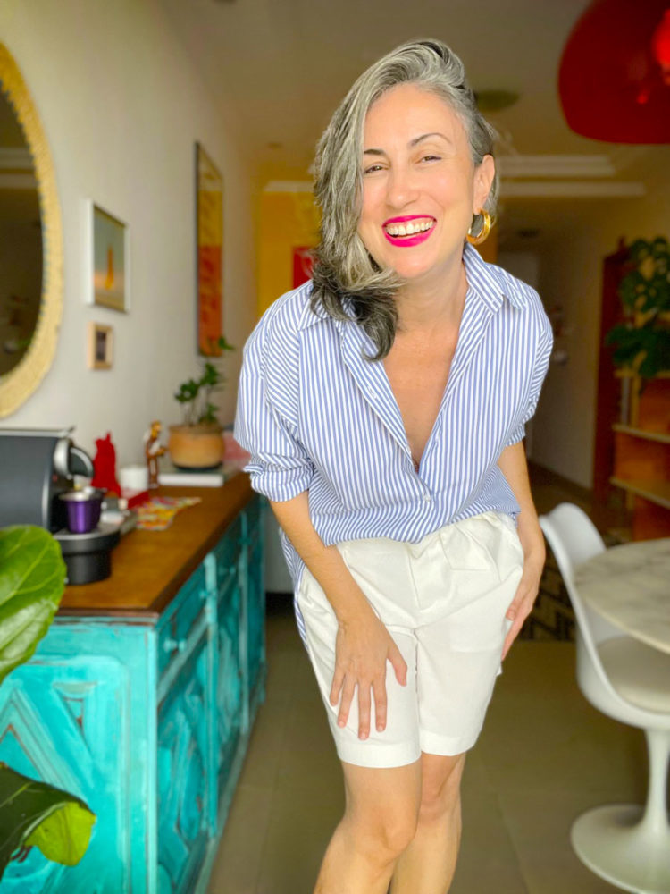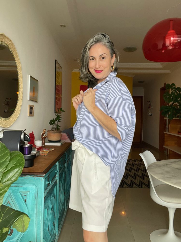 Por isso achei que seria uma dica boa pra dar pra vocês, por ser um tecido com ótimo toque, 100% algodão, considerando que a C&A está presente em muitas cidades e entrega em várias localidades, que o valor está bem ok (R$129,00) e é uma peça realmente versátil, que dá pra usar aberta como terceira peça, fechadinha como uma chemise (ela é mais compridinha), com short, saia, calça, pro trabalho, pro lazer. Como a modelagem é mais ampla (a costura dos ombros é até mais deslocada), achei ótima para mulheres com busto maior.