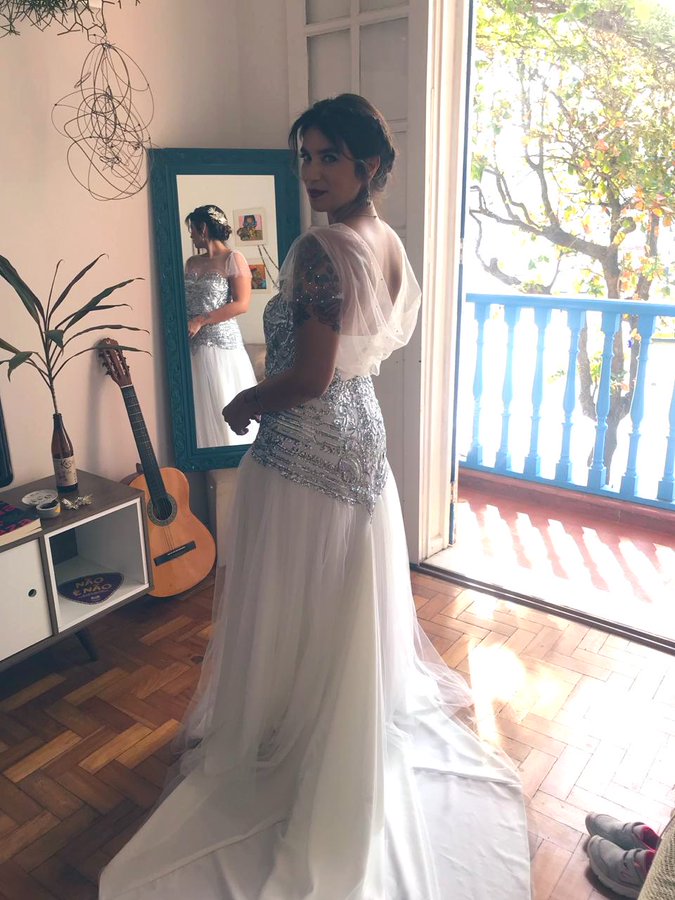 Enquanto tiver pandemia eu não tenho desejo de festejar, porque não consigo ver um momento tão feliz pra mim agora, quando tiver restrições. Nem sei se um dia eu casarei assim, mas gosto de tentar imaginar supostos vestidos, ainda mais agora com esse espetáculo de grisalho que eu tenho e também Nina, que estará comigo <3